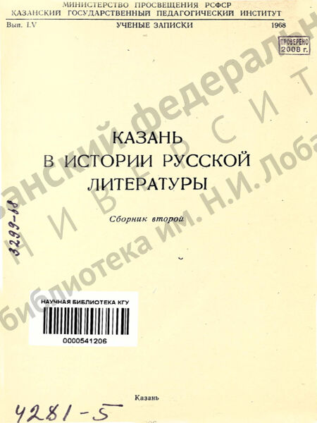 Ученые записки Казанского педагогического института. Казань в истории русской литературы. С. 93-104
