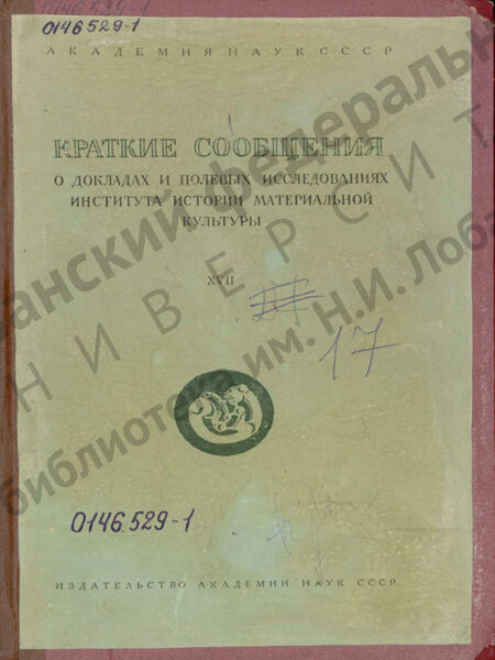 Краткие сообщения Института археологии. Вып. 17. С. 3-8