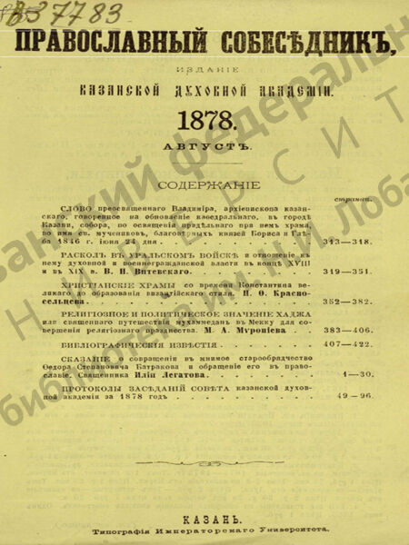 Православный собеседник, издаваемый при Казанской духовной академии. 1878, авг.. С. 319