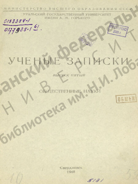 Ученые записки Уральского университета им. А. М. Горького. Общественные науки. Вып. 5. - С. 3-7