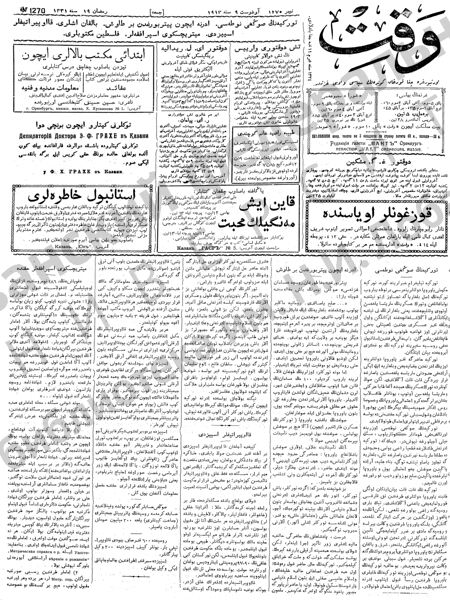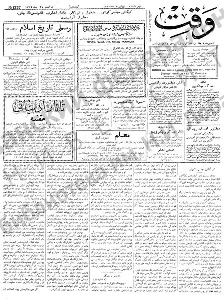 Нур: Голум вә мәгарифтән вә вакаигы галәм вә моктазаи заманнан бәхәс идән әдәби төрек-татар газетасы